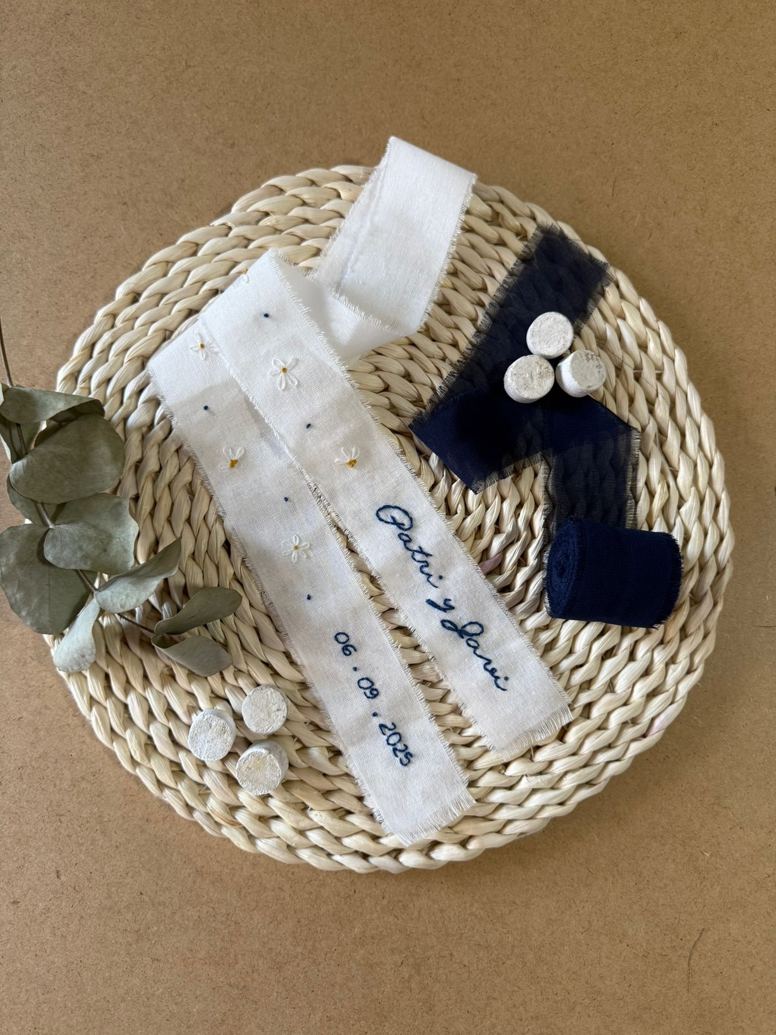 Lazo para ramo de novia bordado a mano en lino natural Celebra el día más especial de tu vida con un detalle que refleje tu esencia. Nuestro lazo para ramo de novia, elaborado en 100% lino natural, combina la elegancia atemporal de los materiales nobles con el valor único de la artesanía hecha a mano. […]